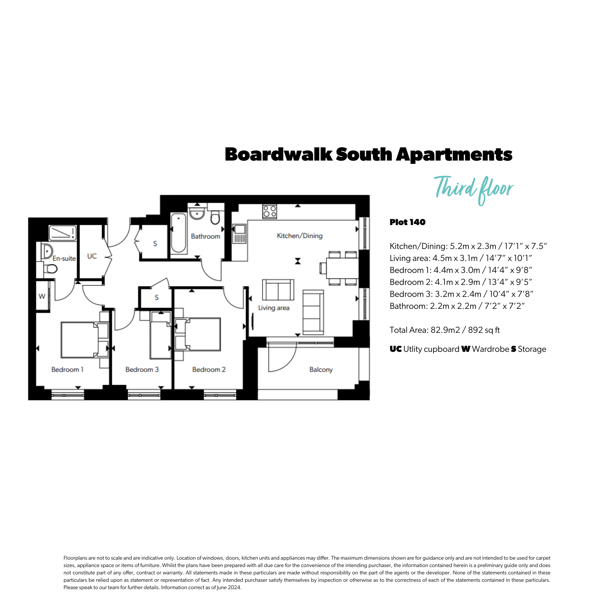 Discover this spacious 3-bedroom apartment within Boardwalk South, boasting a hallway opening out into the open-plan living, dining and kitchen area.
