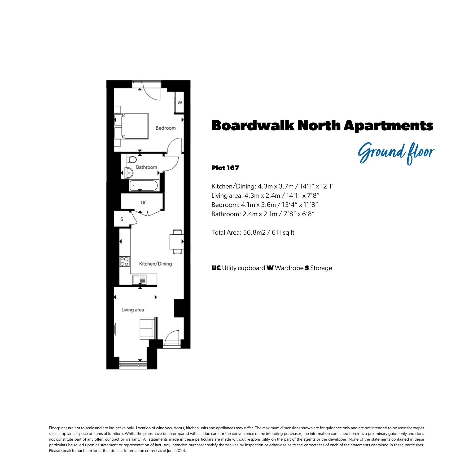 Private entrance leading into this contemporary 1-bedroom, ground floor apartment within Boardwalk North. A modern open-plan kitchen, dining and living area, this home has been designed to offer ample amount of storage throughout.